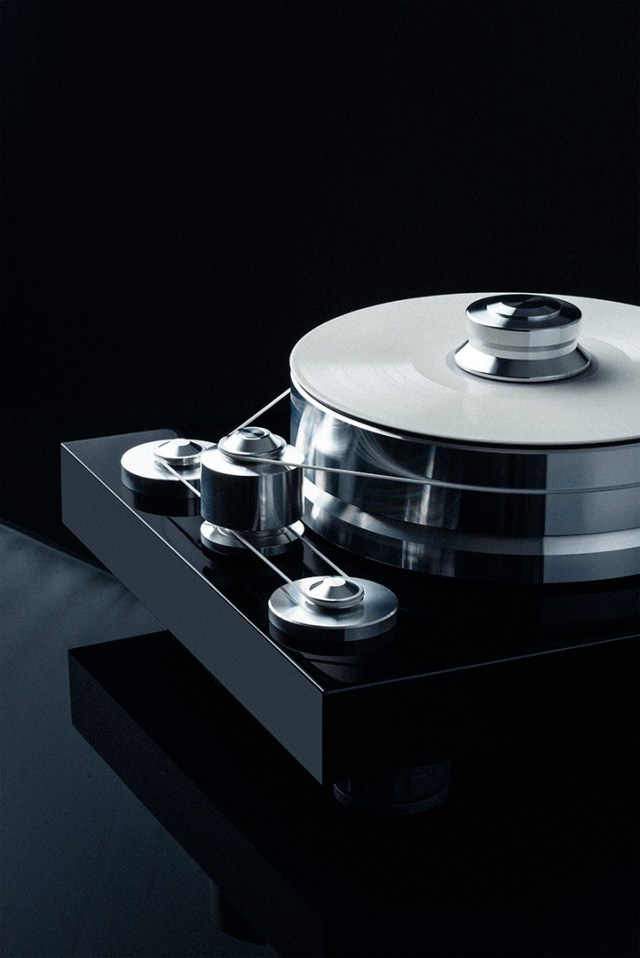 The 10 kg aluminium platter is TPE damped and sits on an inverted bearing which is magnetically decoupled. The vinyl layer on top is the perfect surface for your record.