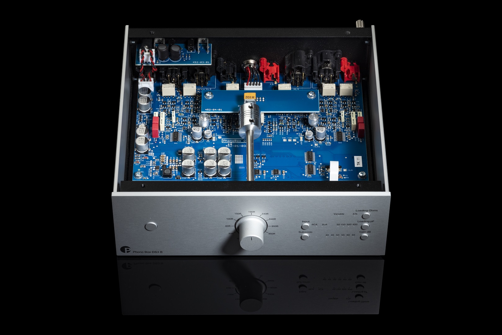 Steel & aluminium casework. Entirely discrete audio circuitry. Fully symmetrical gain stage. Split passive RIAA EQ. Dual mono. Balanced in & outputs. Stepless impedance matching.