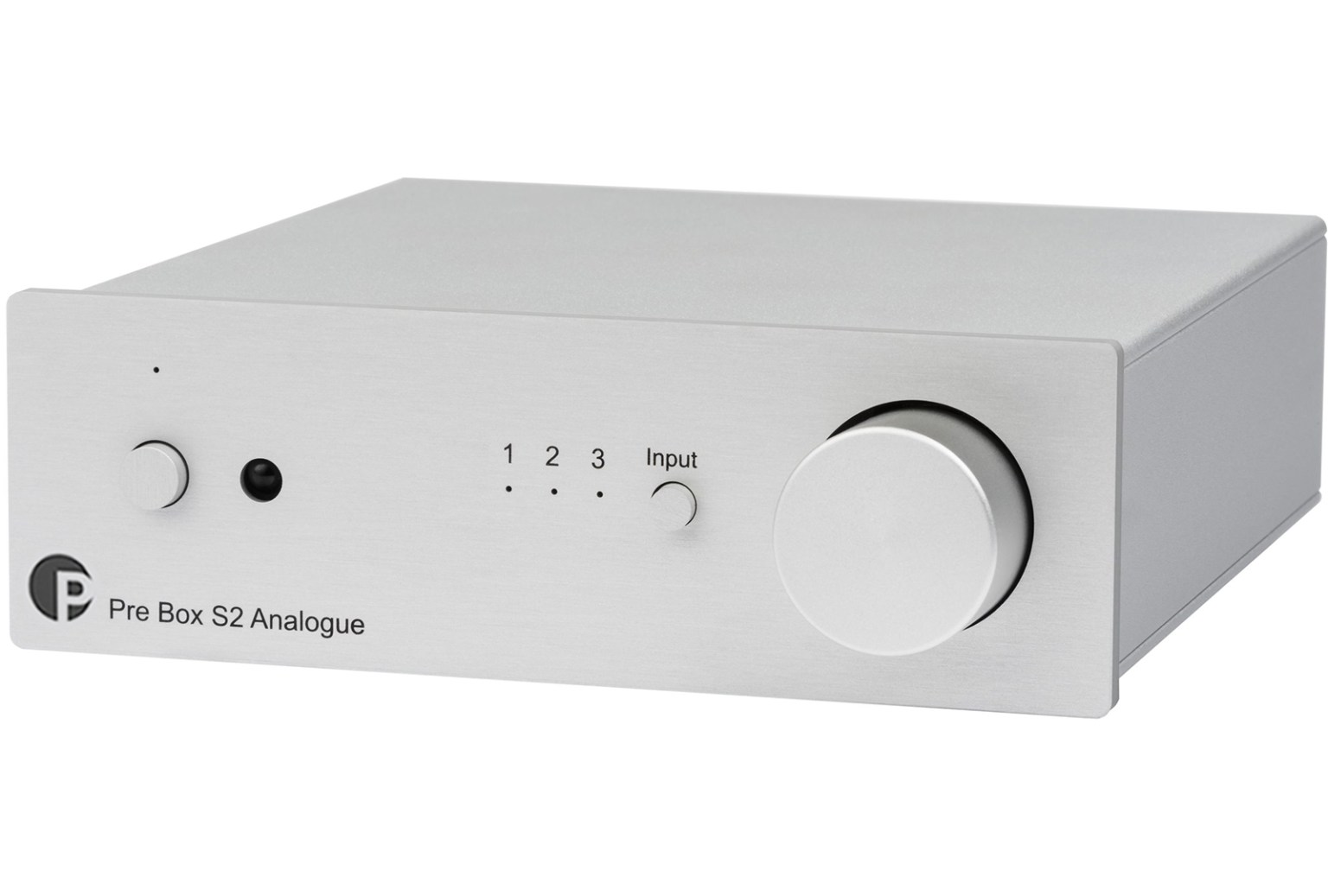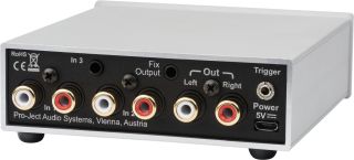 Pre Box S2 Analogue features three line level inputs, two pairs of RCA sockets as well as one separate 3.5 millimeter input. Three individual analogue signals can be passed on to a power amplifier, such as Amp Box S2 or other Pro-Ject Box Design power amplifiers, via the RCA pre-output! The 3.5mm fixed line level output can pass the signal on to an additional amplifier, such as a Head Box S2. A 12V trigger output can remotely turn on other products with trigger input for improved comfort and convenience. The incredibly low harmonic distortion levels guarantee a listening experience which has never been available in this pricerange! The housing is made of an aluminium/metal sandwich construction for highest aesthetics and to protect against unwanted electromagnetic interference and vibratios. Pre Box S2 Analogue comes in silver or black and can be powered by any 5V powerbank or the supplied power supply.
