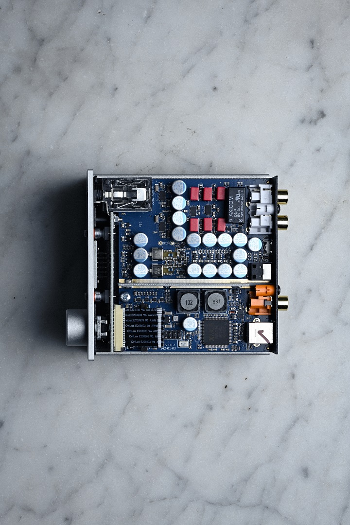 The new analogue output stage, based around the SABRE9603Q, has higher Class A operating current, for improved performance with low impedance headphones and long cable runs.