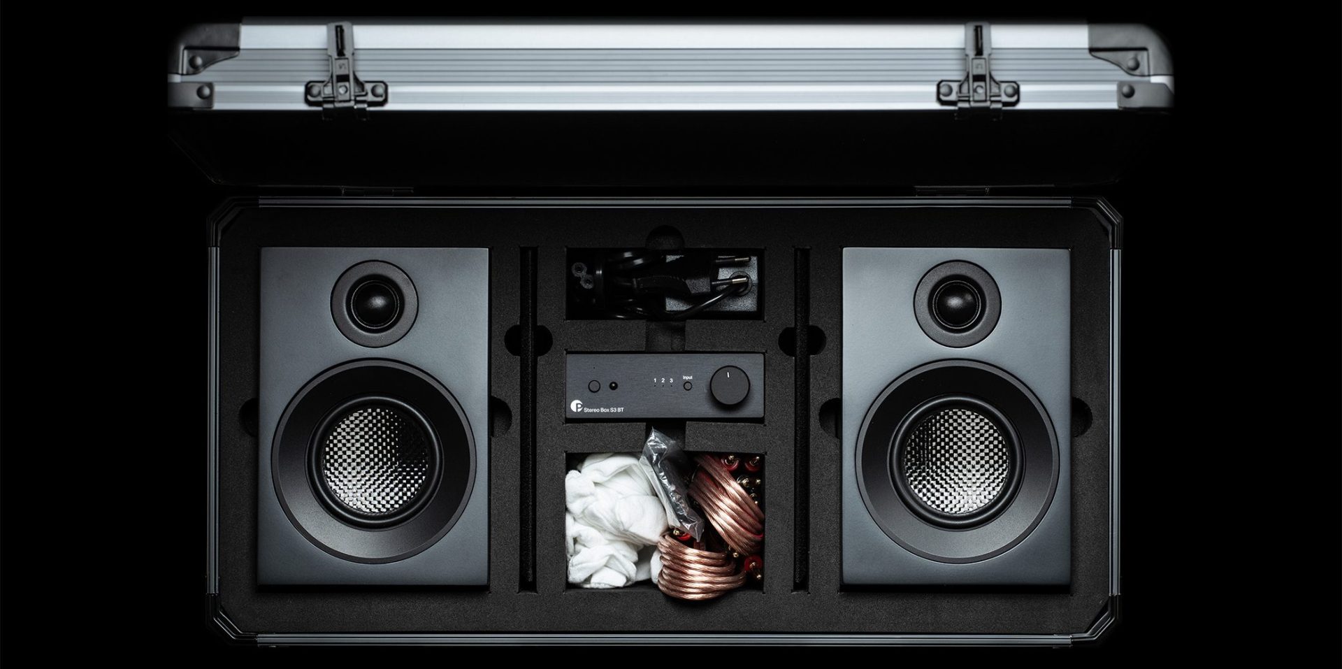 In the box: Stereo Box S3 BT Speaker Box 3 E Carbon Connect it LS E Flex 3m Damp it (6 pieces)