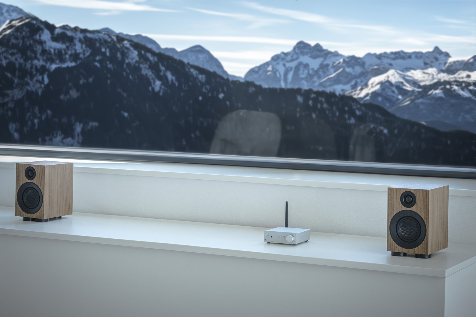 Ultra compact integrated amplifier with high-quality AptX HD Bluetooth input! The full aluminium/metal casing not only looks gorgeous but also protects against vibrations and unwanted interferences.