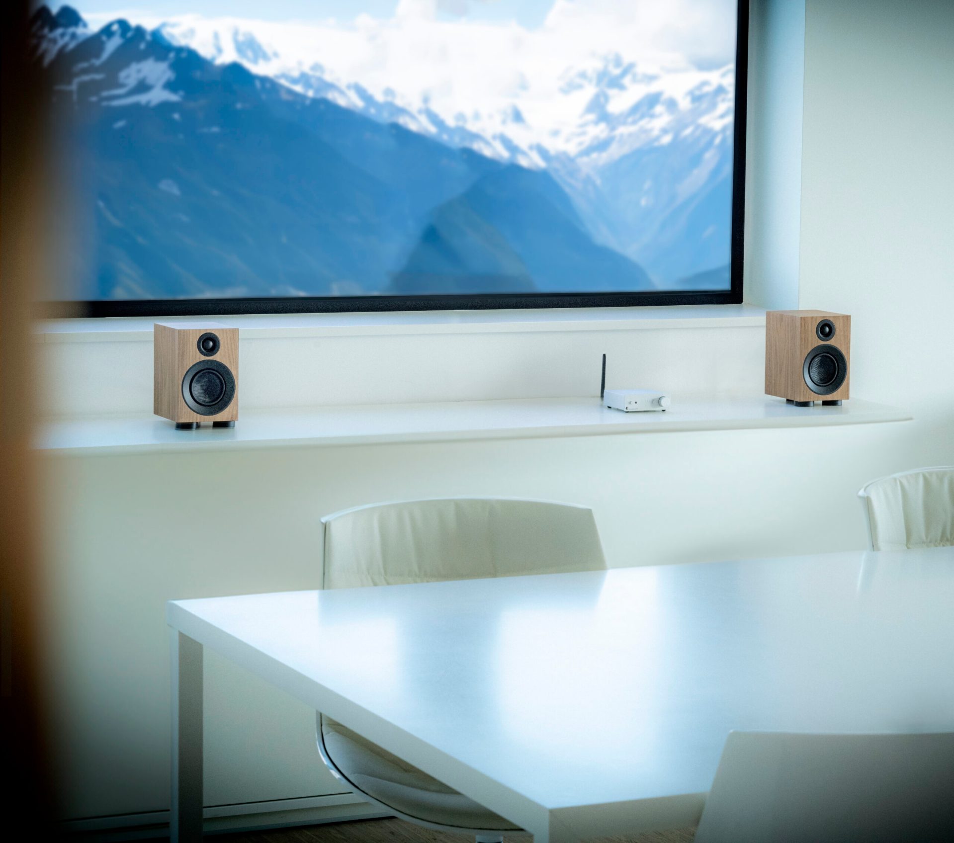 - Ideal desktop and home cinema speaker