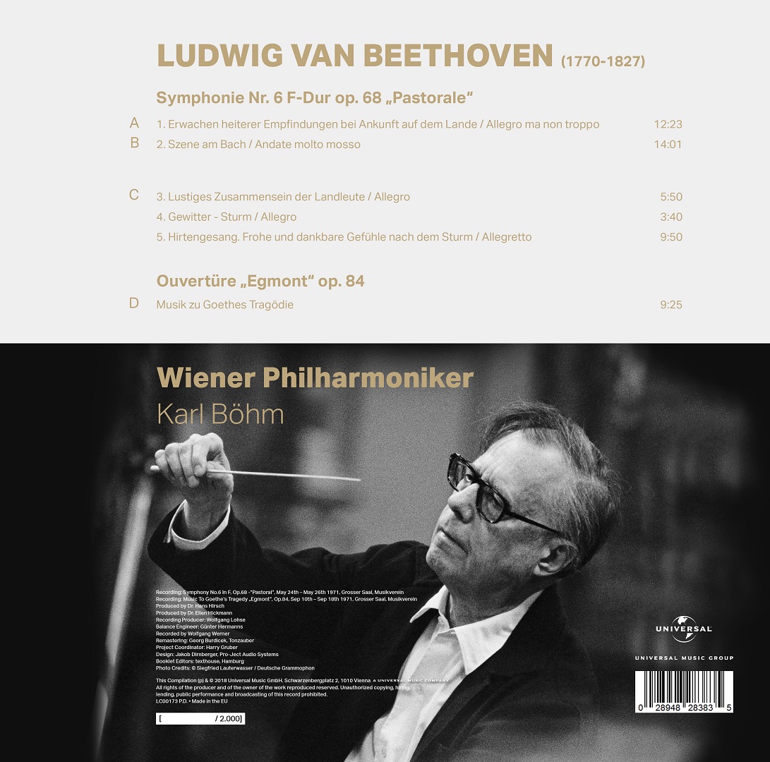 It was the success of this performance of Tristan und Isolde at the Vienna Opera (which Böhm served as director in 1943-45 and again in 1954-56) that led to his début concert with the Vienna Philharmonic in April 1933. His last concert was given in Japan in 1980. If we add to this his 667 appearances at the Vienna State Opera, Karl Böhm, “Austria’s General Music Director”, stood at the helm of the Vienna Philharmonic 1430 times. This figure does not even include the sessions for the many recordings he made with the orchestra during the 48 years of their collaboration. Among them is his rousingly acclaimed complete recording of the Beethoven symphonies from the early 1970s, along with several overtures, including Egmont, composed in 1810 for a Vienna performance of Goethe’s like-named tragedy. All of them bear eloquent witness to a musicianly ideal noted for precision and naturalness of expression, and provide documentary evidence of Böhm’s flawless sense of tempo.