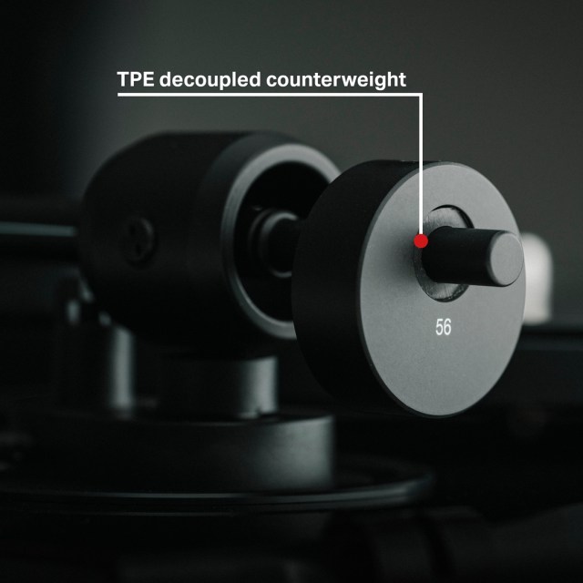 The oversized diameter counterweight is placed closer to the moving parts, improving balance and tracking for better detail and bass response.