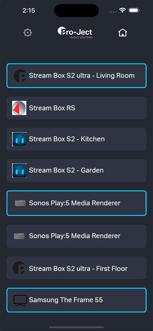 Use the Pro-Ject Control app to select where to stream to. And after that, just use the Stream Control button on the side to start playing to your previously selected streamer again.