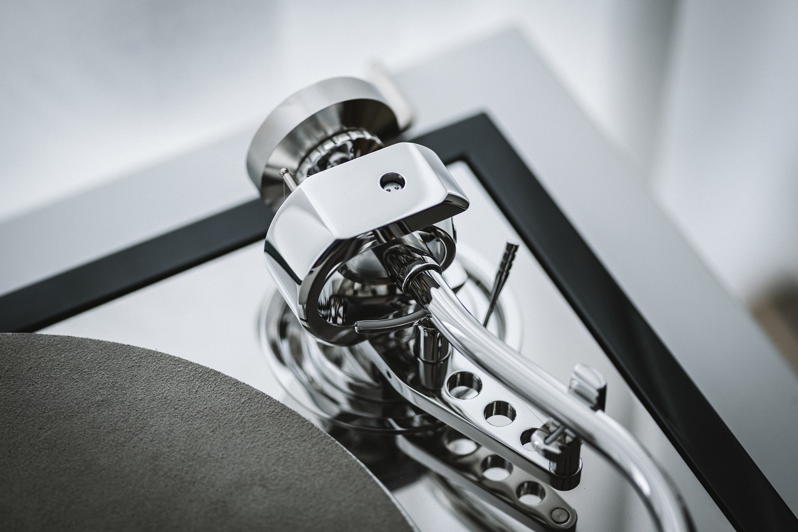 The Classic Reference is equipped with our high end precision EVO 9 AS HG tonearm. It uses an inverted cardanic Swiss ABEC 7 quality bearing with 4 stainless steel tips. The bearing sits in a heavyweight aluminium housing, which provides the needed stability. The massive outer ring is open to avoid resonances. For the EVO AS tonearms, we use a special aluminium s-shape tube with the highest internal damping, paired with a SME-type headshell. The inner wiring is made of flexible high-purity copper which is an optimum conductor for the small phono signal.