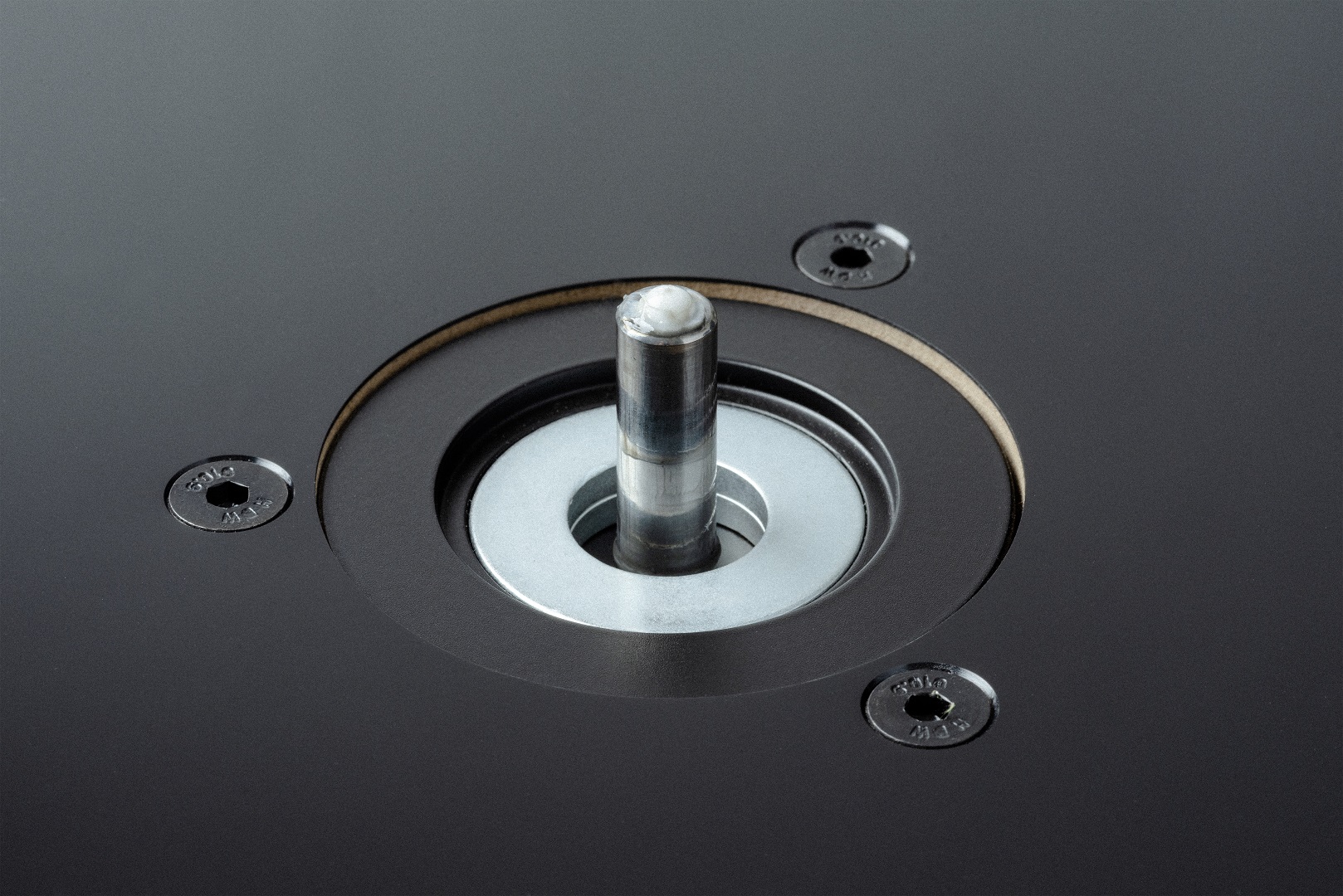 A neodymium magnet decreases the load on the ceramic tipped bearing. Considering the massively heavy platter, this leads to a smoothly rotating base for your vinyl records and perfect speed stability.
