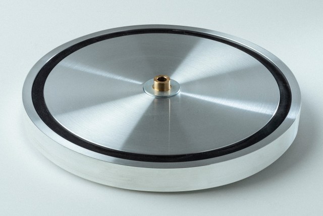 TPE damped, mass-loaded platter precision lathed from a single aluminium block and finely balanced.
