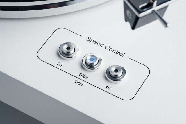 The 10 kg aluminium platter is TPE damped and sits on an inverted bearing which is magnetically decoupled. The vinyl layer on top is the perfect surface for your record.